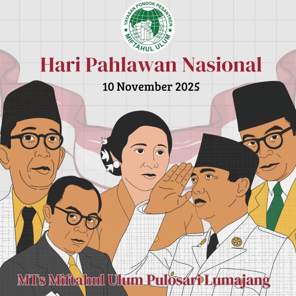 Dalam rangka memperingati Hari Pahlawan Nasional 10 November 2025, segenap keluarga besar MTs Miftahul Ulum Pulosari Lumajang mengucapkan rasa hormat dan penghargaan yang setinggi-tingginya kepada para pahlawan bangsa yang telah berjuang demi kemerdekaan Indonesia. Semoga semangat perjuangan dan pengorbanan mereka senantiasa menjadi inspirasi bagi kita semua untuk terus berkarya, berbakti, dan berkontribusi bagi kemajuan madrasah, masyarakat, serta bangsa Indonesia. Mari kita lanjutkan perjuangan mereka melalui pendidikan dan amal kebaikan yang bermanfaat bagi generasi penerus.