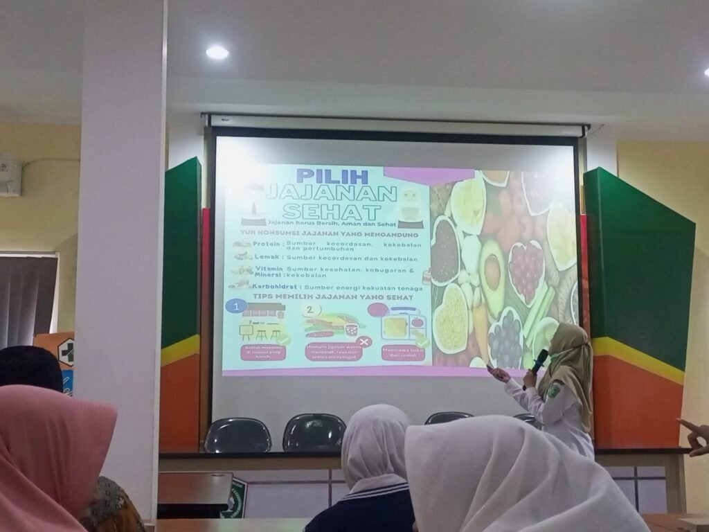 Sesi berikutnya dilanjutkan dengan materi ketiga mengenai Perilaku Hidup Bersih dan Sehat (PHBS) di Tatanan Madrasah, yang memberikan wawasan tentang penerapan PHBS di lingkungan sekolah. Peserta diajak berdiskusi aktif mengenai langkah-langkah sederhana yang bisa dilakukan untuk menciptakan lingkungan madrasah yang bersih, sehat, dan nyaman bagi seluruh warga sekolah. Kemudian, pemateri keempat menyampaikan topik Pencegahan Anemia pada Remaja Putri, dengan penekanan pada pentingnya asupan gizi seimbang, konsumsi tablet tambah darah, serta pemantauan kesehatan secara berkala.